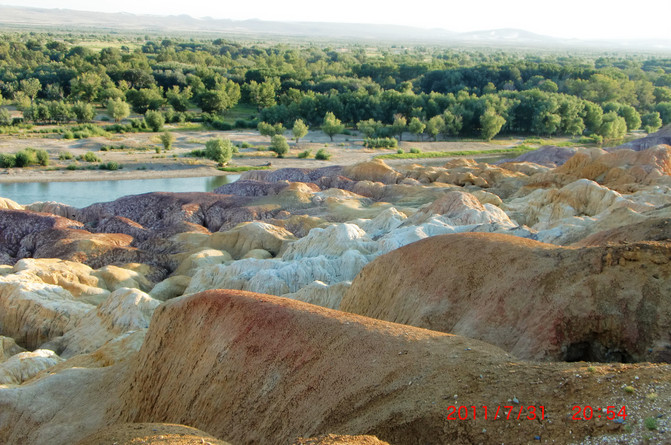 大自然的鬼斧神工,五颜六色的雅丹地貌,我国唯一一条流入北冰洋的河流—额尔齐斯河穿其而过,五彩滩地貌特殊,长期干燥地带,盛行大风,使原来平坦的地面变异出许多陡壁隆岗(墩台)和宽浅的沟漕相间的地形和陡壁险峻的小丘,维族称之为“雅丹”又名“雅尔当”。
