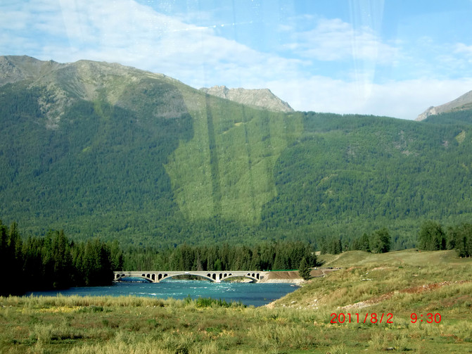 经过“阳光普照的地方”阿贡盖提草原,一派美丽的北疆风光。
