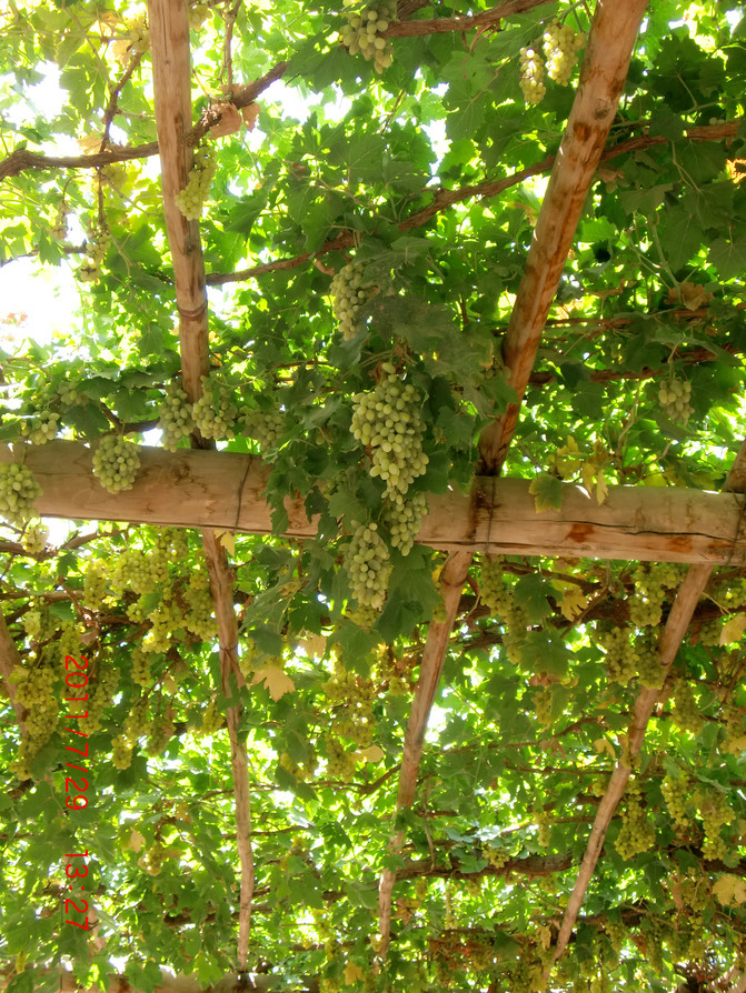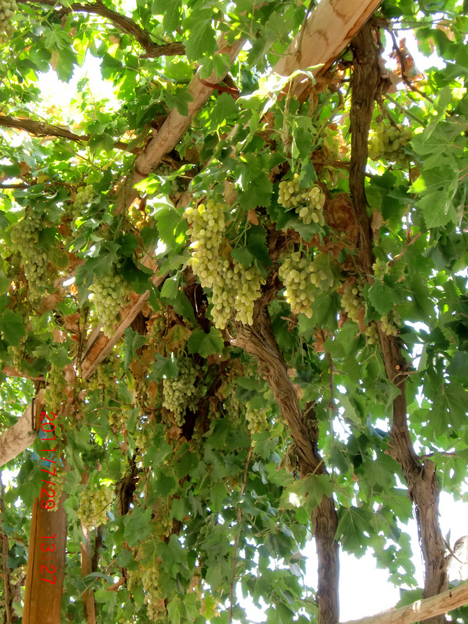 葡萄沟是火热的吐鲁番地区少有的清凉之地,走进葡萄,仿佛进入甜蜜的故乡,所到之处尽是一串串绿色的珍珠悬挂在藤蔓之上。
