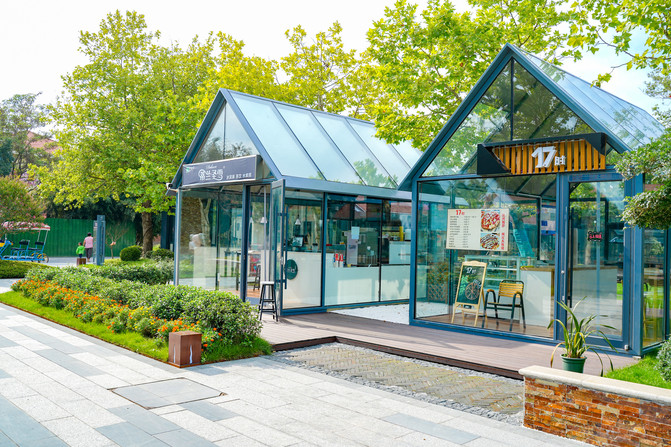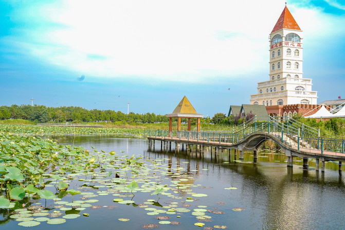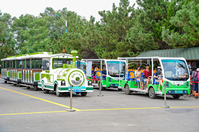 公园内还藏着一座诗意十足的湖泊,只可惜荷花已经凋谢了,只剩下满池的荷叶连连。湖泊中央矗立着一座古色古香的湖心岛,红白相间,异域风情扑面而来。如果走累了,可以坐上时尚俏皮的森林小火车,沿着公路自由穿梭,无需考虑终点,随心所欲,选择一个吸引你的目的地下车,邂逅一段未知的旅途时光。