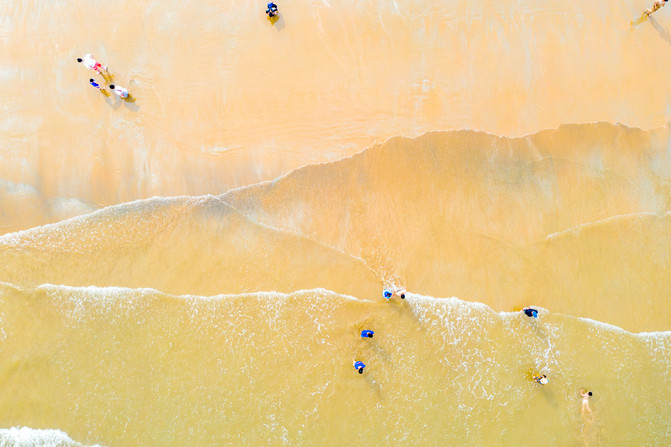 不知不觉来到了海边,此刻的大海像是一口大染缸,蓝的深邃而毫不遮掩,所有的颜色都被这一抹明亮的蓝中和了,美的让人欲言又止,此刻的我就像九岁时追风筝的少年,踩着细软的沙子一路狂奔。沙滩上人头攒动,有堆城堡的孩子,有谈天说地的友人,还有坐着一言不发的年轻人,我想此刻的他们和我一样,完全沉浸在这抹惊艳的蓝色之中了。