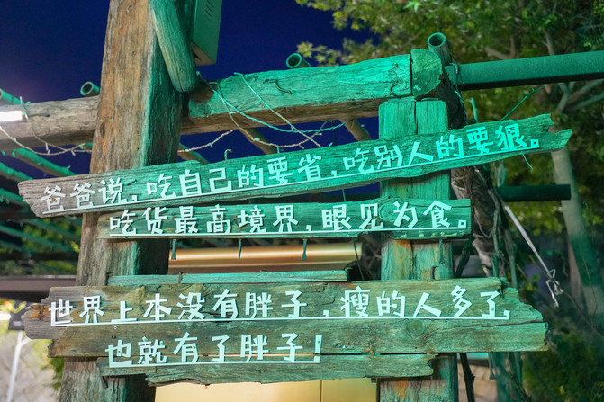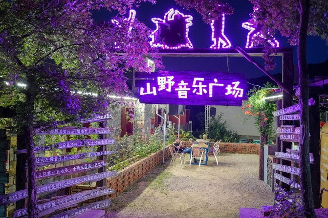 来到这里,既可以体验户外烧烤party,还能来一场露天房车营地电影。如果你和我一样,是一名吃货,那么绝对无法拒绝这里的烧烤,基围虾、羊肉串、总之“眼见为食”,还有各式各样的Slogan,,时刻提醒着及时行乐。当然,光有美食还不足以达到人生巅峰,这里的山野音乐广场霓虹闪烁,悠扬的旋律伴随着山间传来的清风,无限快意涌上心头,相比于热闹都市的小酒吧,这座浑然天成的音乐餐厅似乎显得更接地气,让人沉浸其中,久久无法自拔。