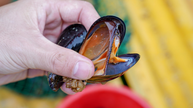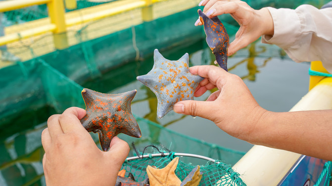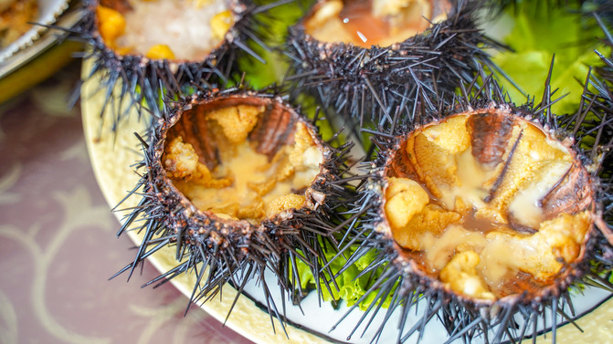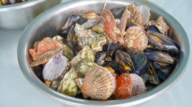 除了河豚,我们还收获了许多其他海产,种类琳琅满目,有宝石蓝内壳的花蛤,有五彩缤纷的海星,超高的颜值宛若一件艺术品,成为拍照合影的最佳搭档。航行的过程中,偶遇翱翔展翅的海鸥,气势汹汹,尽情炫耀着它的一对利器。