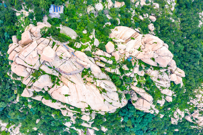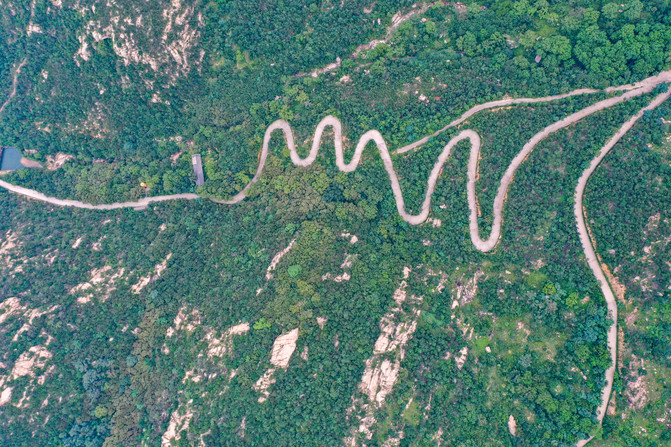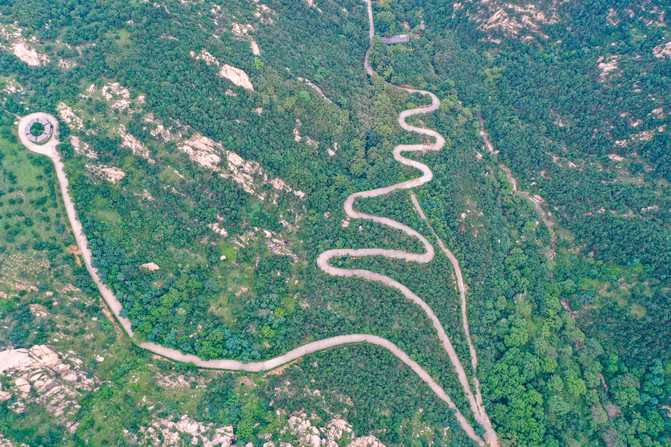 徐霞客说:“登黄山,天下无山”,在我看来,河山的气势似乎更胜一筹。河山取自“众河之源”,海拔高达628米,位居日照东部群峰之首,有种否极泰来之势。初见河山,我就忍不住拿出无人机,如此壮美的景色,普通的相机完全无法捕捉,这冰山一角完全不能体现河山的壮美。漫山遍野的绿色之中,一条蜿蜒曲折的玉带若隐若现,宛若一座长龙盘旋于山谷之中,让人可望而不可即。