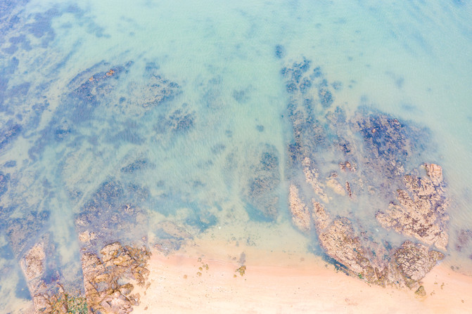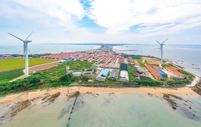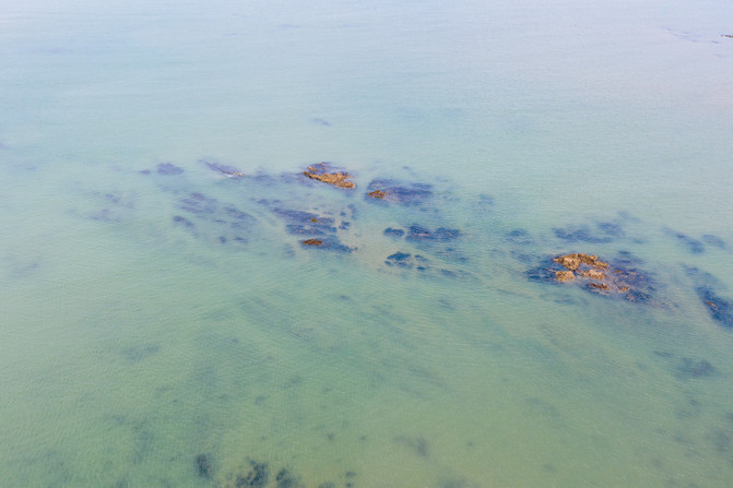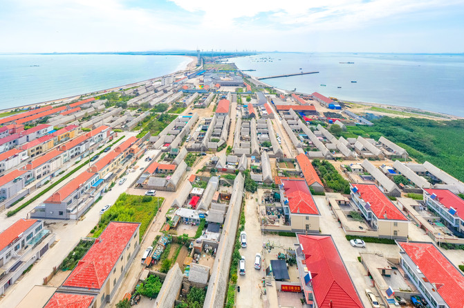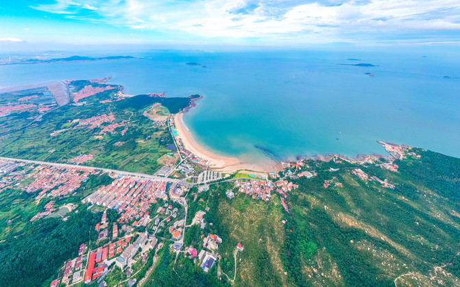 俯瞰东楮岛,古老的海草房与现代的瓦砾房相互碰撞,生活气息浓郁,令人动情的是那波光粼粼的海面,酷似一幅泼墨画,水天一色,任意渲染,美得让人沉沦。
