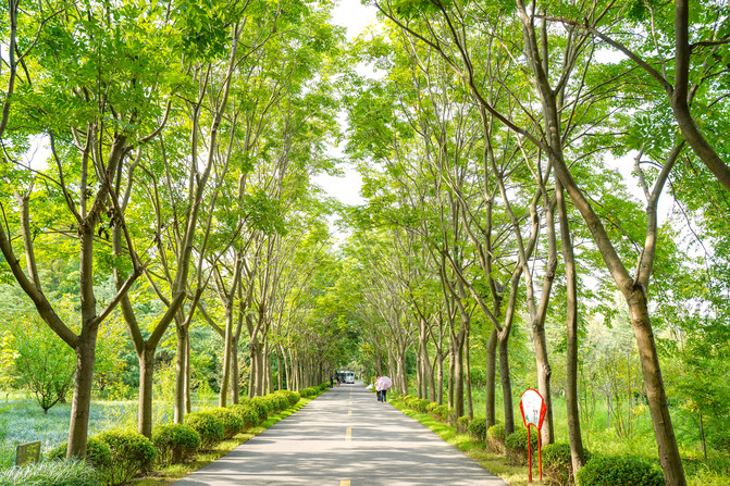 走进公园,我便下意识的大口呼吸,呆惯了钢筋混凝土的高楼大厦,偶尔与大自然亲密接触,幸福感油然而生,瞬间就觉得人间值得了。公园的森林覆盖率高达75%,走进后我的瞳孔似乎只剩下绿色,莫名的舒适感由眼部传至大脑,让人完全失去了打开手机的欲望。