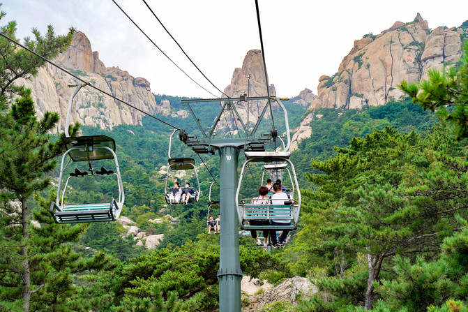 游崂山仰口,觅仙山古迹,缆车穿梭的瞬间,将秀美画卷隽刻。