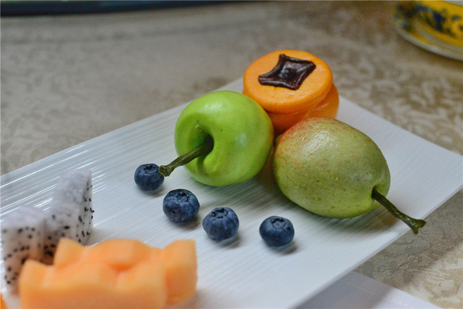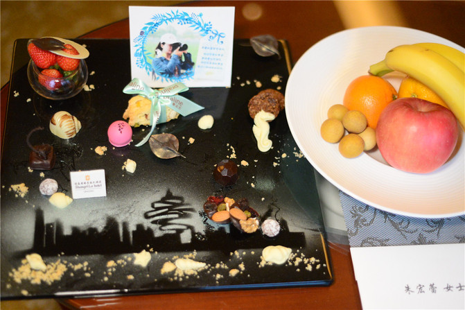 在前台办理check in,前台的小姐姐送我一支娇艳欲滴的玫瑰花,没想到客房里还有更大的惊喜等着我~一份海洋巧克力拼盘,拼盘上的海螺,海马,贝壳都是用巧克力做的,另外还有用我的微博头像制作的名牌,是用糯米纸打印好贴在巧克力上的,简直太爱了。完全舍不得吃的节奏!