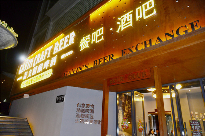 盖文的啤酒交易所位于香格里拉大酒店L01层。当创意美食与精酿啤酒相遇,融合造物街区、生活美学实验室,一场味蕾、视觉、身心的沉浸式体验就在这里开启。由海门路走进,远远就能看到独具特色的工业风门头。进入盖文,除去扑鼻而来的麦芽香,简约而设计感十足的工业装修风格,也会令人眼前一亮。这里有16种不同口味的精酿啤酒,可以根据自己的喜好选择。如果你对酿造工艺感兴趣,他们交易所里就有16个大啤酒桶,可以看到整个制作过程,这又是一种不一样的体验。