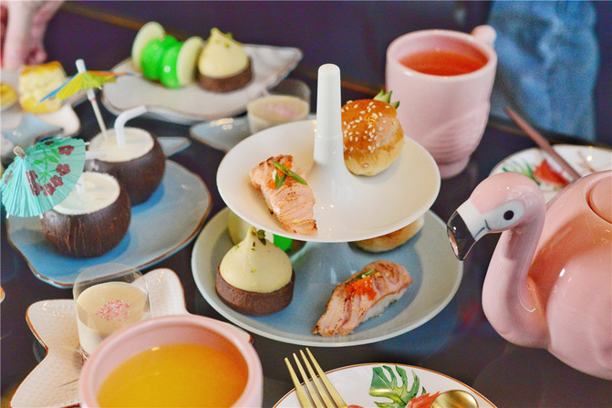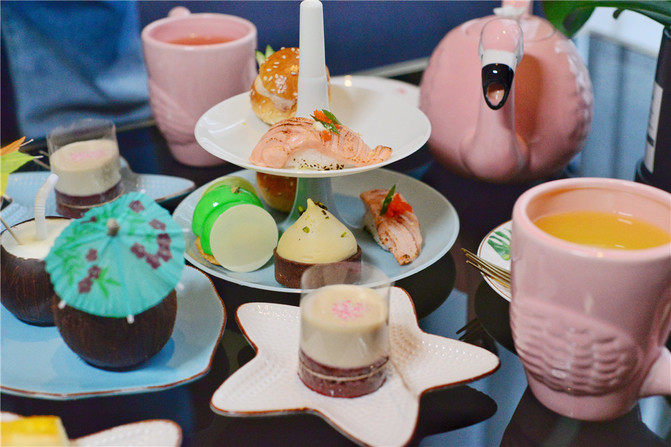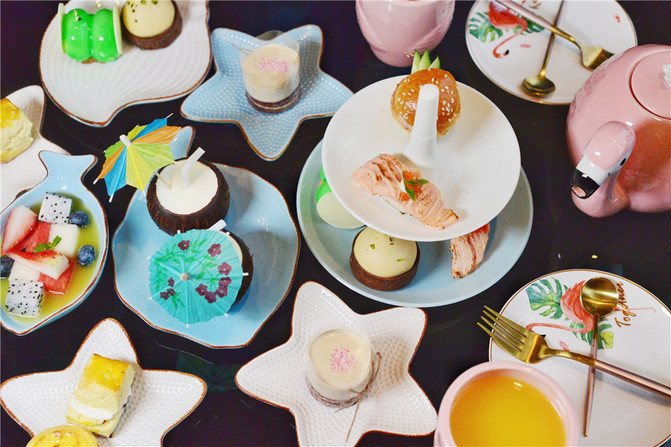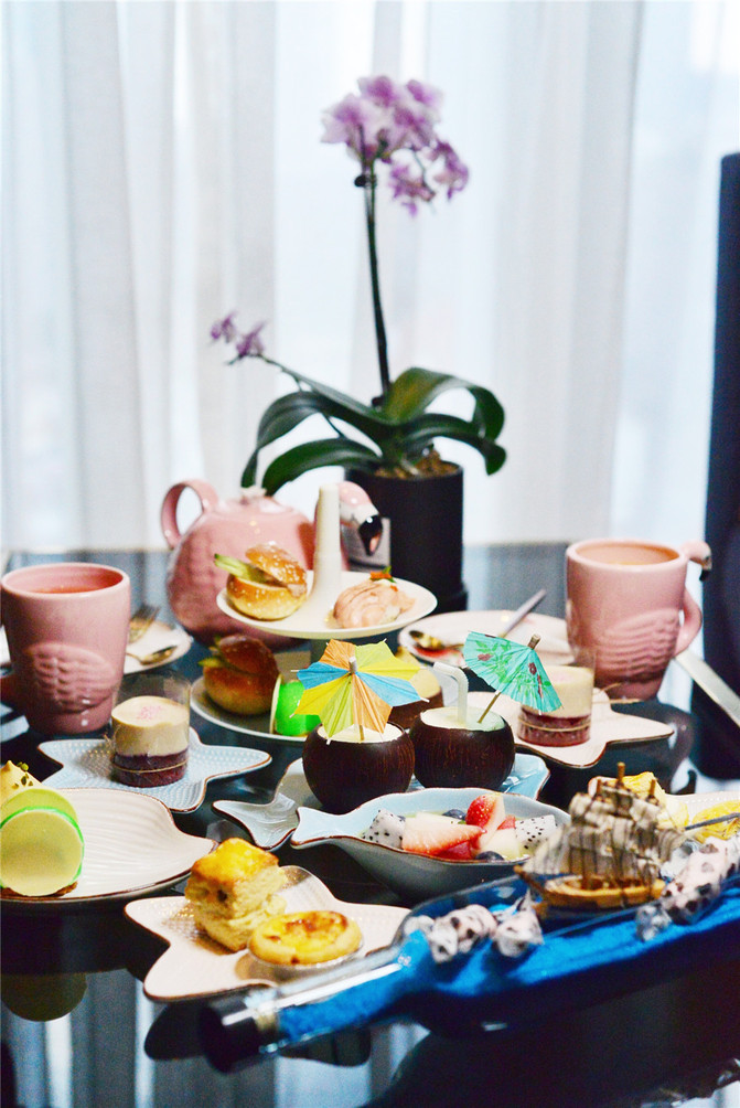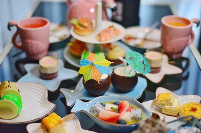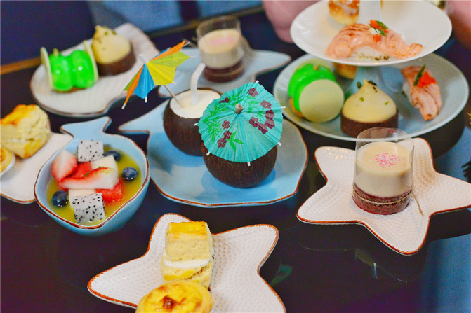 威斯汀酒店海洋双人下午茶,仅售118元,无论从环境、摆设、或是餐具,全部依照传统英式下午茶习惯打造。绝美的瓷壶、精致的碟子……每一款都只能在电影中出现的画面,居然如此实在地摆在面前。由司康,海盐伯爵奶油红丝绒蛋糕,芒果蛋挞,榛子巧克力奶油香提蛋糕,手握三文鱼寿司、吞拿鱼三明治、时令水果、手工蔓越莓牛轧糖、荔枝青柠慕斯蛋糕、椰子蛋糕组成的套餐,