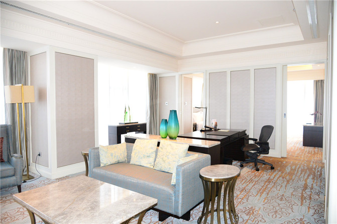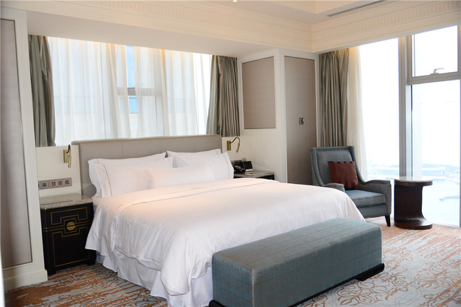 青岛香格里拉大酒店老楼清香阁翻修以后,以基础客房为主,新楼盛世阁则全部为行政客房。