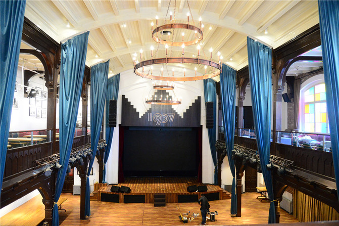 走进一楼的楼道,你会了解德国水兵俱乐部的前世今生,一张张黑白照片成为城市的珍贵历史记忆。一楼的电影音乐剧场,满墙的电影海报,分分钟将带你走入到电影的光影世界中。走出电影音乐剧场,穿过充满历史感与工业风的展廊,你可以看到庞大的老式电影放映器材与拍摄器材的展示。