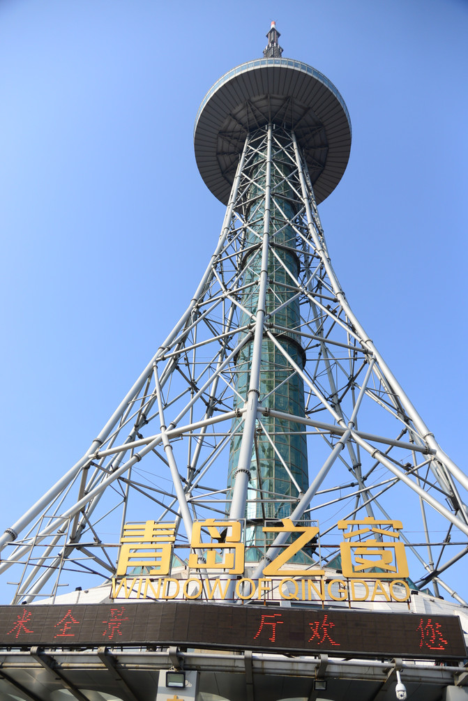 在青岛太平山上,坐落着一座宏伟的高塔——青岛之窗电视塔。全塔塔高232米,海拔高度348米,被誉为中国第一钢塔。