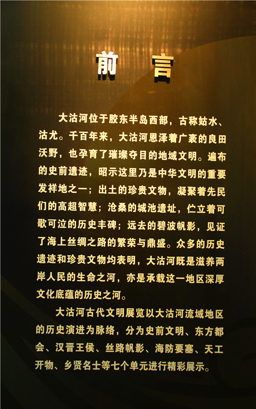 大沽河历史博物馆包括自然资源展馆、河流历史及传说展馆、主要产业展馆、民俗手工艺品展馆、传统民间文艺展馆、现代文艺展馆这六大展馆。