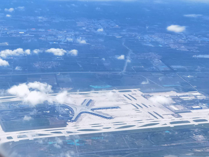 最后来一组半空中俯瞰胶州湾跨海大桥和建设中的胶东机场的照片,和青岛济南挥手再见!