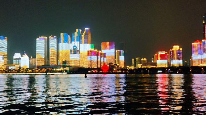 早早的,五四广场和奥帆中心人头攒动,人们三五成群漫步海湾,欣赏着青岛的暮色西沉。晚上八点整,沿岸摩天大楼灯火辉煌,这座包罗万象的都市正通过一组组灯光秀向世界展示青岛的历史、人文、发展历程。
