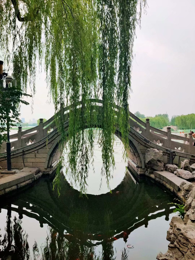 荷叶罗裙一色裁,芙蓉向脸两边开。我认为,在明湖,溪上虹桥卧波,湖中荷香四溢,溪岸垂杨披拂,这遮天蔽日的荷叶与婀娜多姿的垂柳比映日荷花更胜一筹。