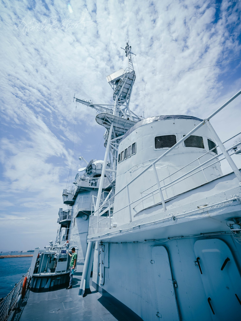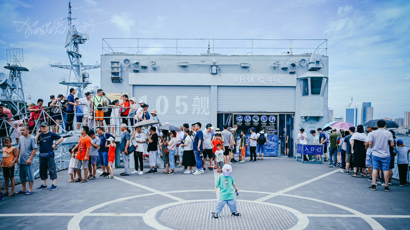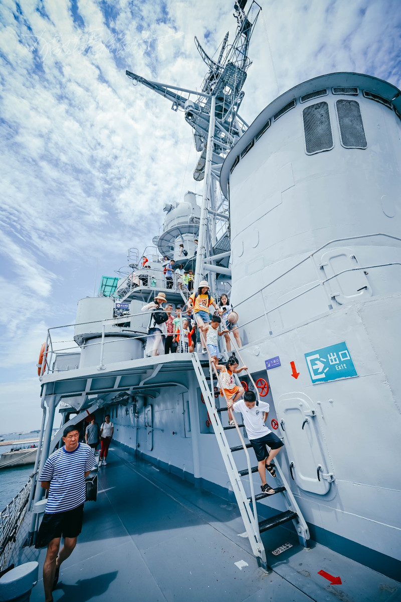 由于坐船到海军博物馆,比较慢,岸上的武器转一圈后,猫猫只有1.5小时。今天游客众多,登舰参观要排队,所以猫猫放弃了101舰。把重点放在105舰济南舰。 105 中国自行建造的第一艘驱逐舰 济南舰