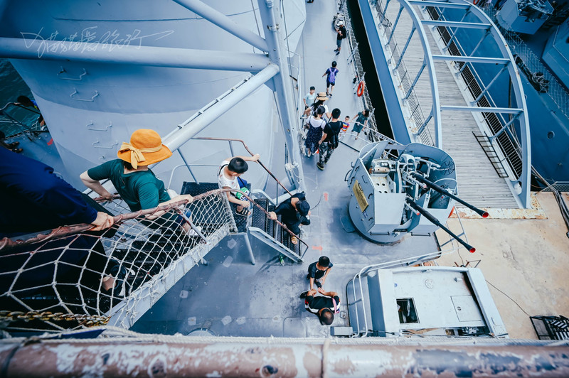 鹰潭舰名气相对小很多,作为展示,一条驱逐舰,一条护卫舰搭配进行。这边的游客明显少很多。