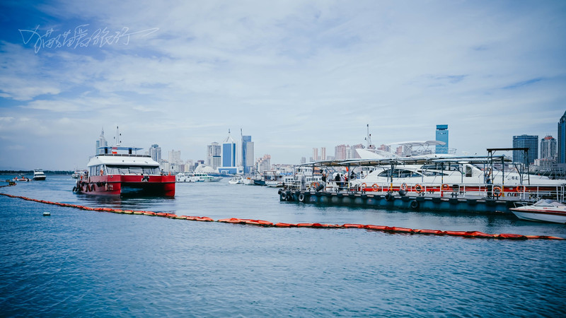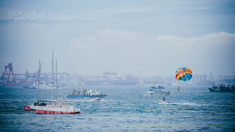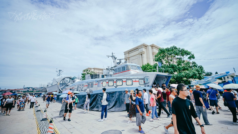 栈桥和海军博物馆之间,是游客码头,可以看到想登船出海游玩,或者体验摩托艇,滑翔伞都可以在这边乘坐。