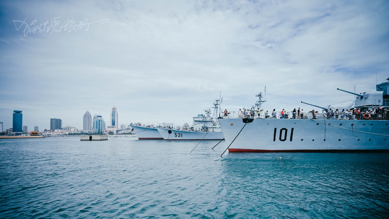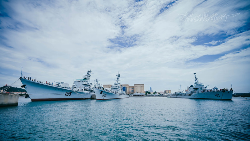 转过来可以看到105济南舰531鹰潭舰及101鞍山舰并排停泊在港口,供游客参观。