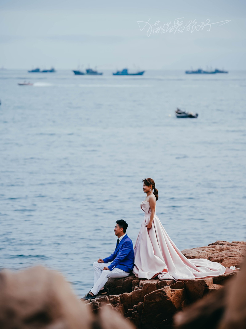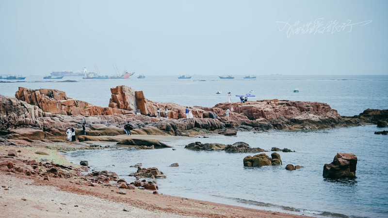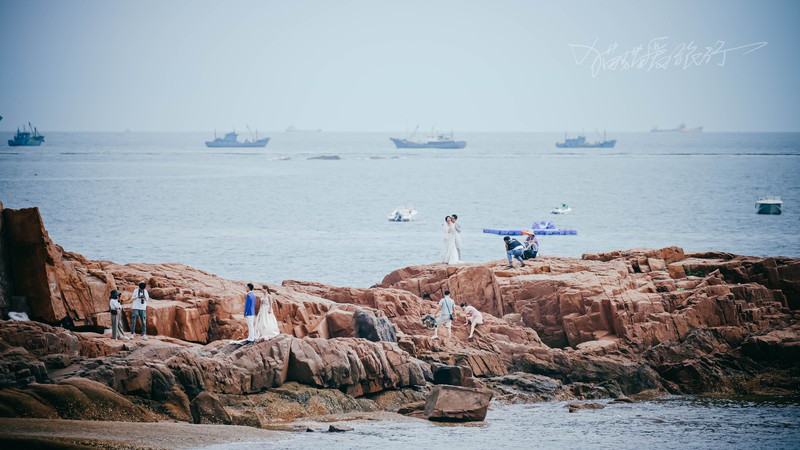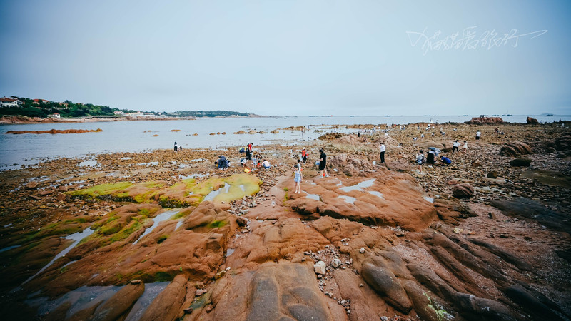 可能是退潮的原因,很多人在礁石捡贝壳,或者抓一些小鱼,小霞,玩的很开心。