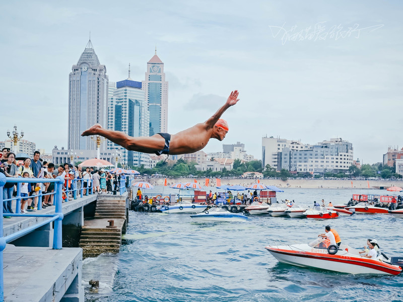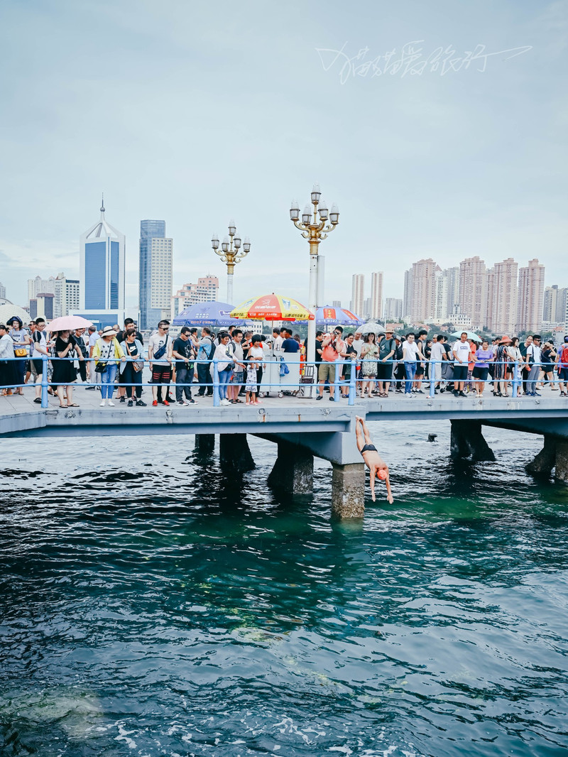 听老人与当地人交谈,他每天早上要来这边跳水健身,每天十几个落水。
