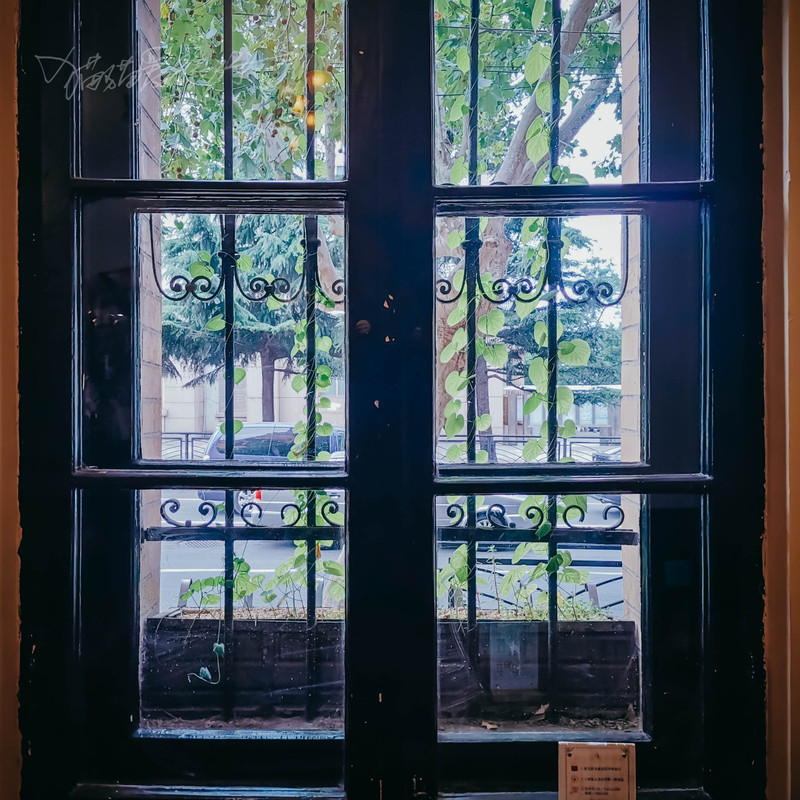附近都是近代建筑,如果没有汽车,透过玻璃,以为在民国时期。