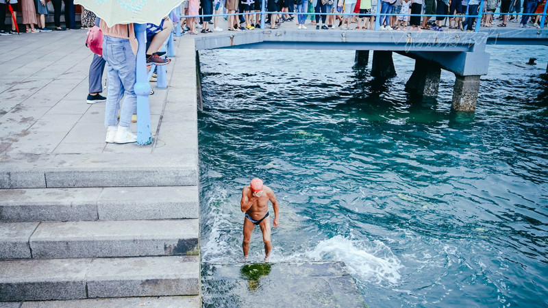 偶然间,看到一位老人,在水中畅游。众多人驻足围观。