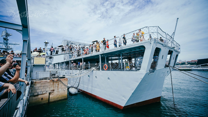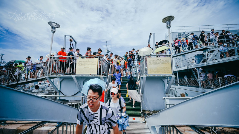 这次猫猫走了博物馆北门,可以乘船围着军舰转一圈。军港码头和游客码头,一线相隔。 海军博物馆