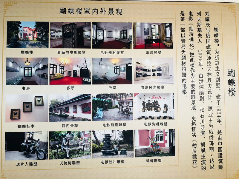 八大关最有名的三栋小楼还剩这最后一栋——蝴蝶楼。这里并非因房主或住客出名,而是八十年前一部引发轰动的电影《劫后桃花》的取景地,女主角胡蝶,导演张石川,讲述了德日侵占时期青岛一家人的悲欢离合以及国人捍卫家园的惨痛经历。