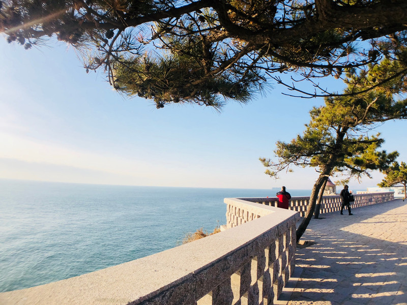 八大关之后沿着海边步道途径第二海水浴场,围观惊叹在冬日大海中畅游的大爷大妈们,低头瞅瞅裹成个圆柱体以至于连鞋都看不到的本人,会心一笑,继续往小青岛公园走,路上才得知已停业关闭,临时调转方向,前往被各位小姐姐刷爆微博的网红地标——大学路&鱼山路。