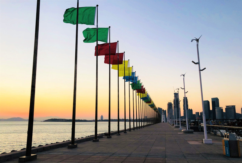 冬日里的海边观景步道很冷清,偶有一两个锻炼的老人经过,非常庆幸在这个冬日我来到了这里。来不及感叹,日落前的时间总是过得特别快,如果想在入夜前走到奥帆中心,怕是要加快脚步了。