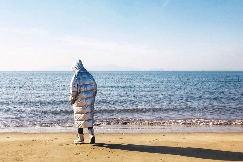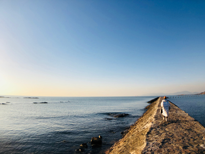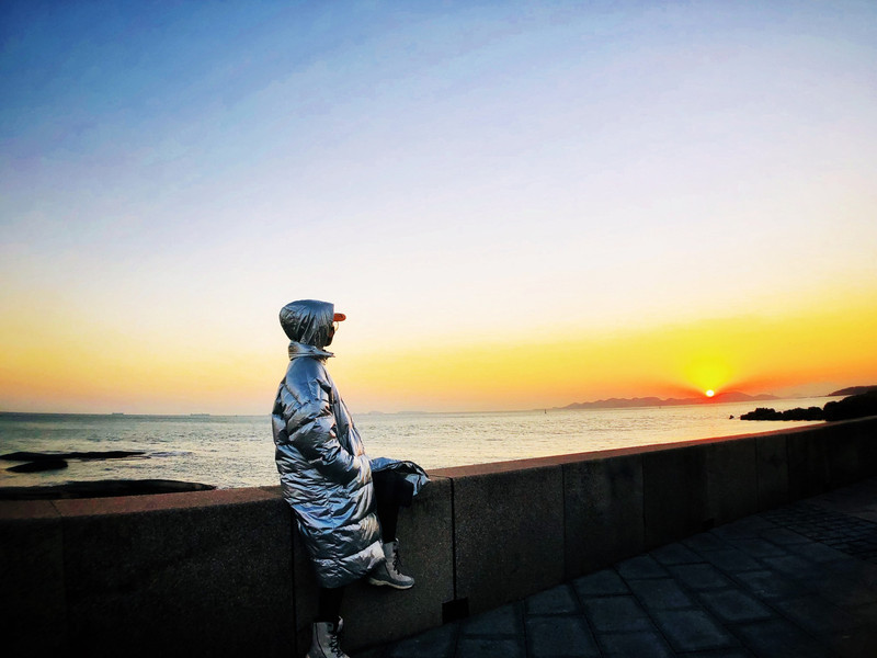 稍作修整,窗外阳光正好,特别适合在寒风中压个马路。沿台湾路来到东海中路,一路顺着海岸线走,步伐稍快,太阳以肉眼可见的速度下落,每一寸光芒都很珍贵。