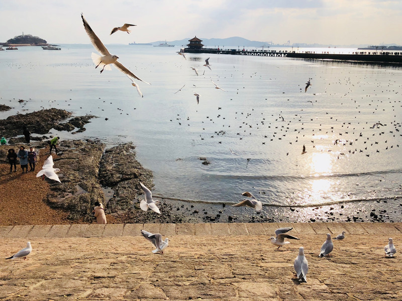 栈桥最大的看点难道就是成群飞翔着争食的海鸥??