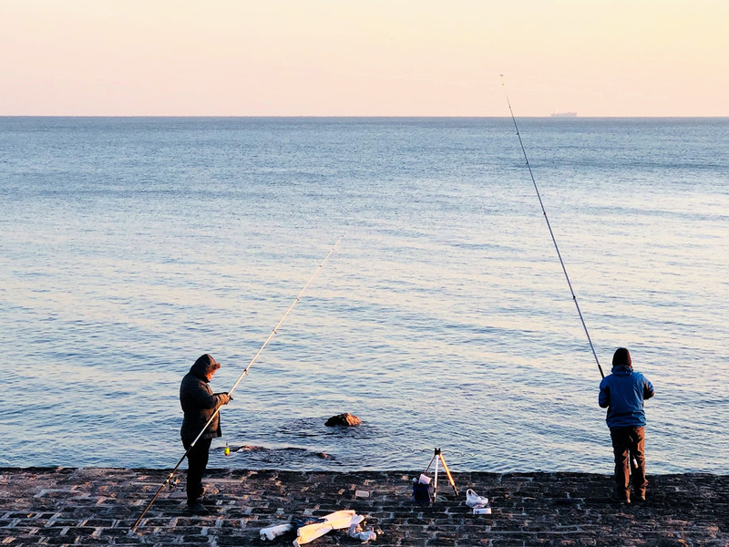 遇到日落,遇到海男,还遇到了冬日海钓的人。
