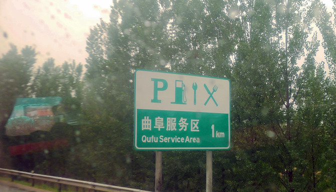 12:30结束午餐,Ying X.L.等二位同学离团,Ying为天津人,另一位就是山东(淄博)本地人,大部队驱车赴青岛。汽车沿G3京台高速向南,12:42驶过造型别致的“曲阜服务区”,不久后转G1511(日兰高速)向东前往日照方向,14:29又转 G25(长深高速)向北驶向天津方向,15:16经“马站枢纽立交”转进G22(青兰高速)向东,最终驶往青岛方向。15:23在“沂水杨庄服务区”稍停,大家下车方便、活动腿脚,这里属于临沂市。
