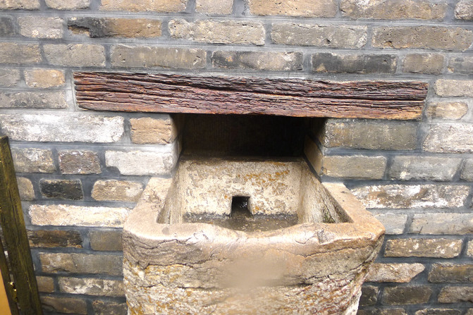 三堂之后便是孔府“中居”,也即“衍圣公”日常居住的内宅,有一道戒备森严的“禁门”将“中居”与“前厅”隔开,门前专设传话“差弁”,负责内外信息沟通。“禁门”墙壁上设置水槽,称“石流”,每日的供水都是挑夫先将水倒入此槽,然后再隔墙流入内宅蓄水池中。