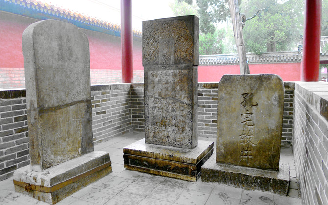 9:47由“中路”转入“东路”,主要是去参观孔子旧居,这里有一口水井,据说就是当年孔子家人取水之井。孔子为东周“春秋”年代末期的鲁国人,死后故宅被改建为庙,最初的孔庙很小,后经历代扩建,方才有了今日之规模。“故井”西侧有面红墙,前竖“鲁壁”碑石,相传孔子八世孙孔鲋为避秦始皇“焚书坑儒”,远隐嵩山,离家之前将众多经典著作的竹简埋藏于故宅墙壁,直至西汉年间又被发现,方才让这些文化瑰宝最终免遭失传,“红墙”与“鲁壁”石碑就是明朝年间为纪念这一故事而添建。