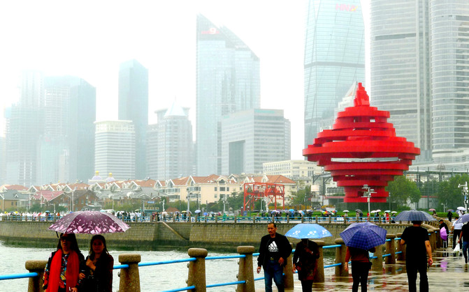 9月20日,今日的安排是上午在青岛市内观光,午餐后赴威海。早餐后大约9:00冒雨出发,首站“五四广场”,它位于青岛市政府门前,因为“五四运动”是缘由青岛主权而爆发,因而广场被命名为“五四广场”。这座广场为长条状,“东海西路”将其切割成为南、北两区:北区连接青岛市府,是中心广场;南区濒临海湾,是“浮山湾”海滨风景区的一部分。