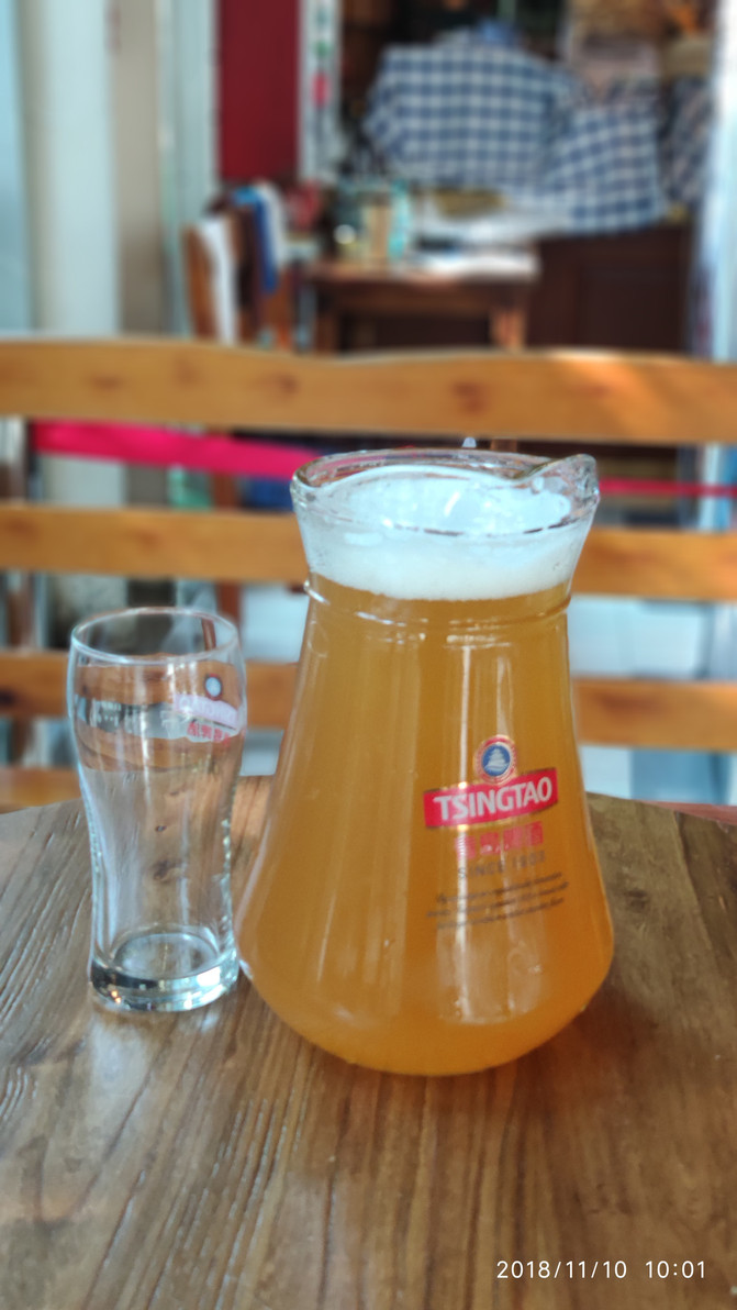 来青岛行程中肯定要有啤酒博物馆,门票中是送两小杯啤酒的,自然也就不能开车。考虑下午还要开车,为把风险降到最低,就买了青啤博物馆最早一轮的门票(8:30~10:30)。所以今天可以稍微睡迟一些。实际上打的到的时候才8点15,还等了一会儿才开门。A馆看了些历史展览,B馆主要是生产流程,啤酒也是在B馆赠送品尝。拿着微冰的酒杯,晒着暖暖的太阳,真是惬意。还有一些旅游团的还点了烧烤,真有点馋了。对了青啤博物馆边上就是海鲜烧烤一条街,可惜这次无口福了。