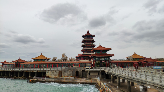 D3概述:一早退房至八仙过海,10点赴南山雨中游,16点返回青岛入住汉庭八大关店,万象城晚餐品船歌水饺,风中观奥帆中心夜景