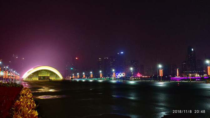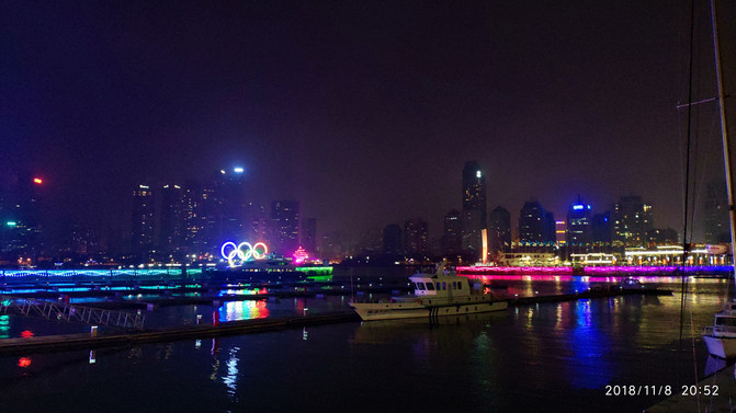 草草填饱肚子,时间才20点多,不算太迟,继续驱车奥帆中心看夜景,灯光确实不错,只是风大了些。转了转拍了些照片就回酒店休息了。