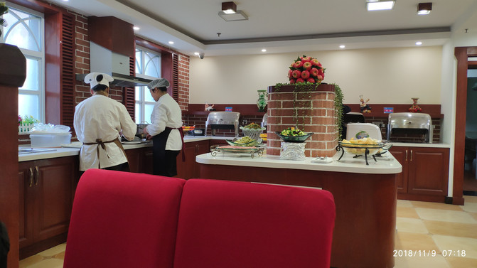 一早看外边的树叶上映衬着跳跃的光影,前晚就和老婆商量了,只要天气好,还是今天去崂山。酒店的早餐非常不错,是这几天最好的。