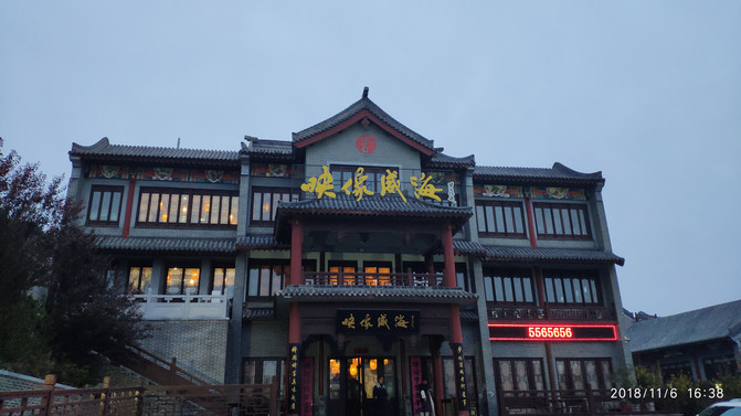 开始导航到了孔庙,在里面转了一圈没找到,又继续往南下坡几十米才看到酒店。时间才16点30,天已经快黑了,走到里面感觉除了服务员就没人,心里还打鼓是不是停业了^_^,结果一问所有大厅、包厢都没了,要提前2/3天预订的。后来看咱们“可怜”,而且就两个人,找了个根本不是用餐区的小桌子,让咱们用餐了。随便点了几个菜,山东菜分量足、油水足,海鲜做法也是重油,很快就腻饱了,剩下挺多菜,可惜。我们快吃完的时候,才是用餐高峰期,生意确实不错。