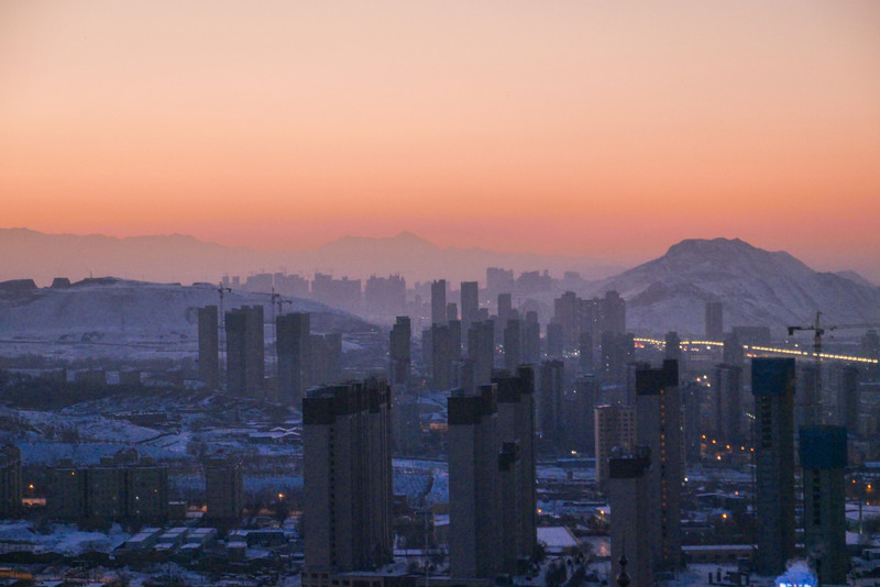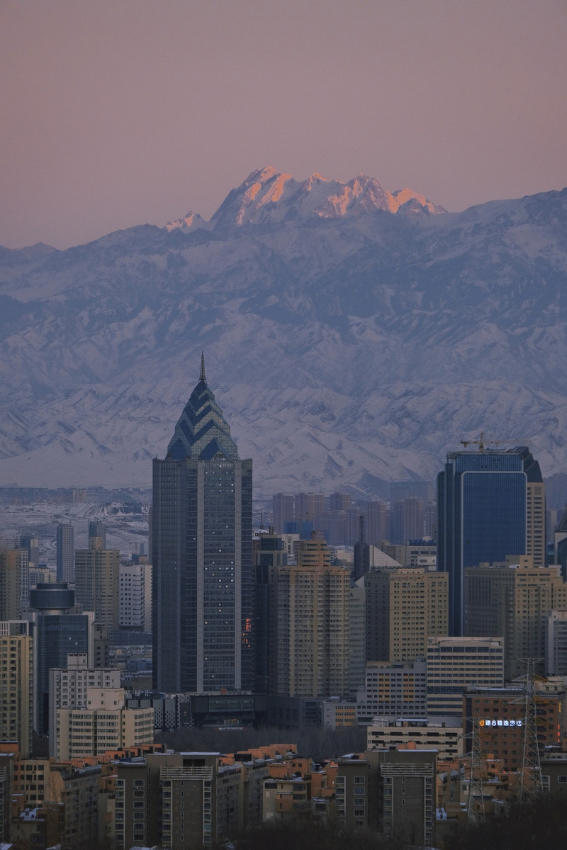 回到乌鲁木齐,决定去爬雅玛里克山,弥补半年前来没有爬上山顶看日落的遗憾。就像北京的景山一样,雅山就在乌鲁木齐市中心。一路小跑上山,但是因为路上积雪多也真走不快。40分钟后终于到达山顶的久久世纪亭,乌鲁木齐天际线尽收眼底,粉色雪峰矗立在云端,这样的美景,哪座城市还能有啊?
